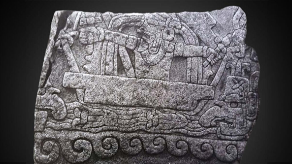 The article discusses how Izapa, Mexico’s Temple Northern Plaza F has a carved monument showing a bearded man in a boat. This Stela 67 primarily displays the migration of the first K’iche Maya family that came from a land across the sea. This Stela 67 is oriented to the Tacana Volcano to the north. It is in a place of Honor to commemorate the first Maya family of migration.